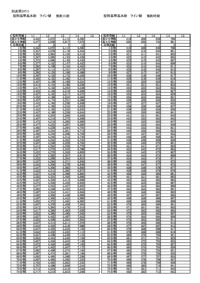 ▽116-1.契約社員就業規則:別表第2の1から第2の3(R7.10.1施行)